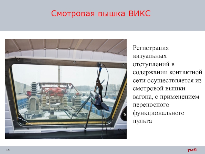 Смотровая вышка ВИКСРегистрация визуальных отступлений в содержании контактной сети осуществляется из смотровой вышки вагона, с применением переносного