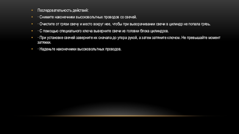· При установке свечей заверните их сначала до упора рукой, а затем затяните ключом. Не превышайте момент затяжки.