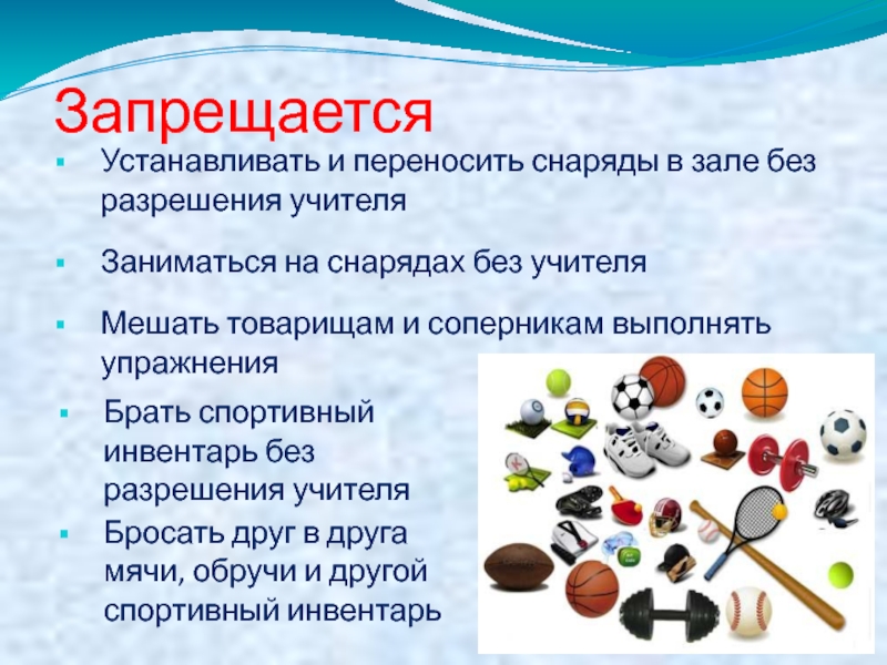 После занятий весь спортивный инвентарь должен быть собран в месте хранения