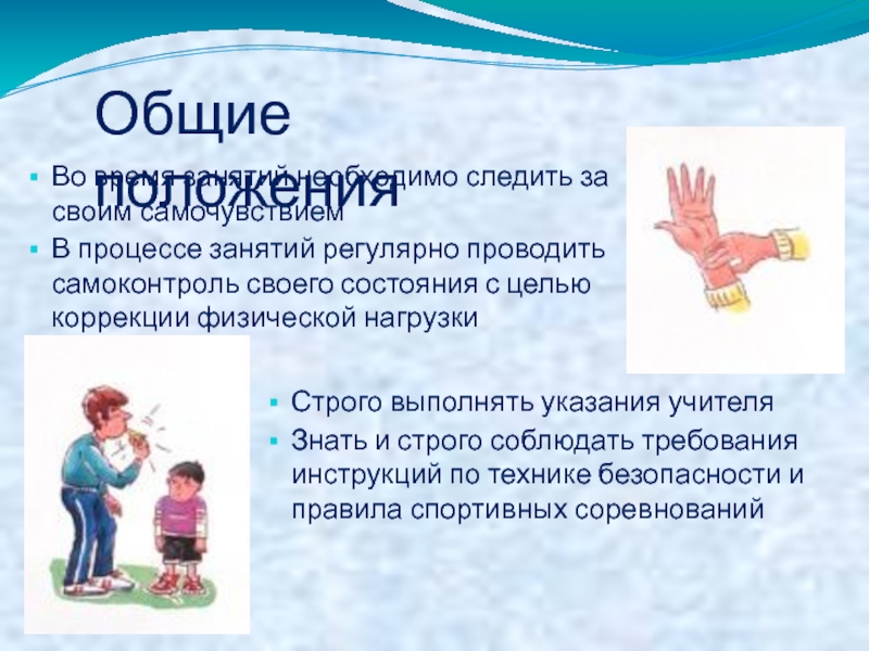 Знать и строго соблюдать требования инструкций по технике безопасности и правила спортивных соревнований