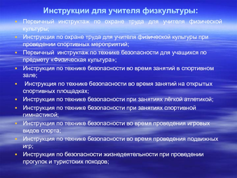 Инструкция по технике безопасности во время занятий в спортивном зале;