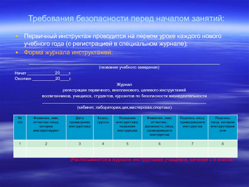 (Расписываются в журнале инструктажей учащиеся, начиная с 9 класса)