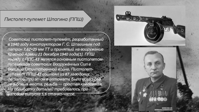 Слайд 4Пистолет-пулемет Шпагина (ППШ)
