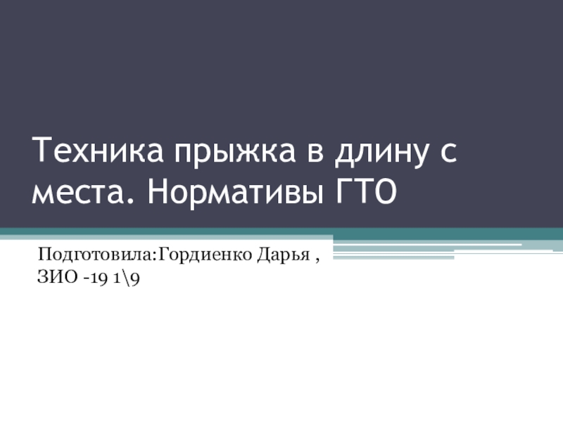 Техника прыжка в длину с места. Нормативы ГТОПодготовила:Гордиенко Дарья ,ЗИО -19 1\9
