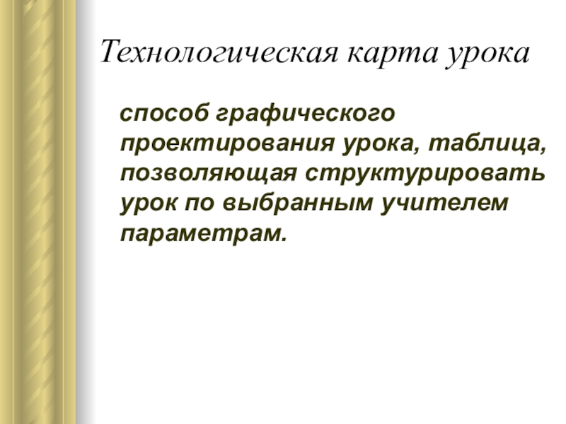 Технологическая карта урока  способ графического проектирования урока, таблица, позволяющая структурировать урок по выбранным учителем параметрам.