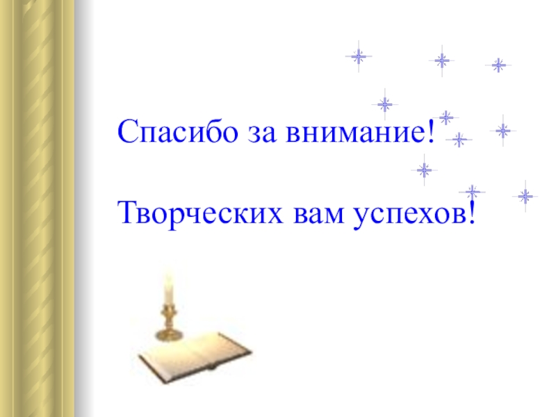 Слайд 8Спасибо за внимание! Творческих вам успехов!