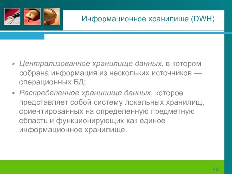 систему локальных хранилищ, ориентированных на определенную предметную область и функционирующих как единое информационное хранилище.