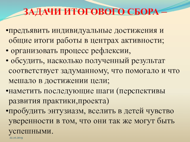 Слайд 14ЗАДАЧИ ИТОГОВОГО СБОРА –