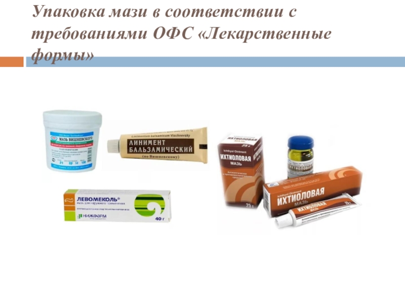 Слайд 24Упаковка мази в соответствии с требованиями ОФС «Лекарственные формы»