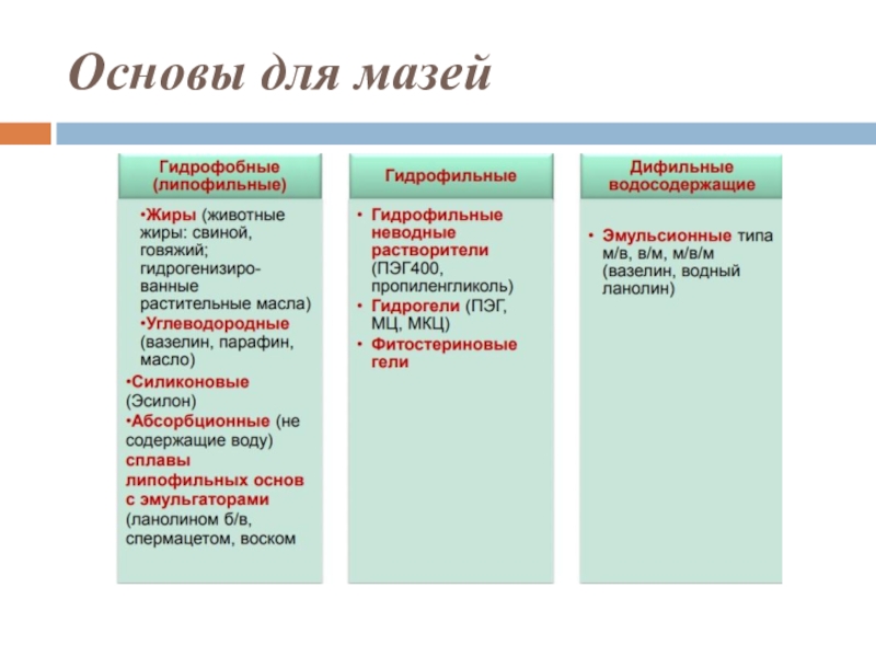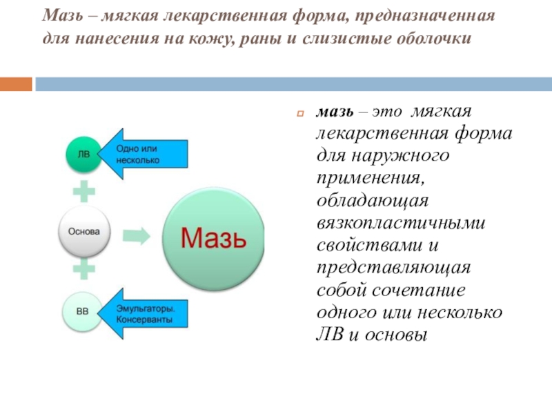 Мазь – мягкая лекарственная форма, предназначенная для нанесения на кожу,