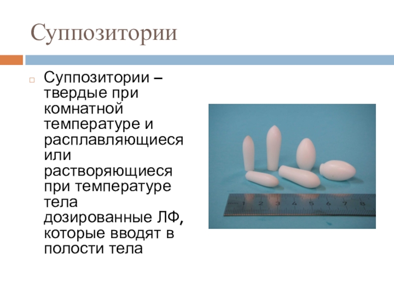Суппозитории – твердые при комнатной температуре и расплавляющиеся или