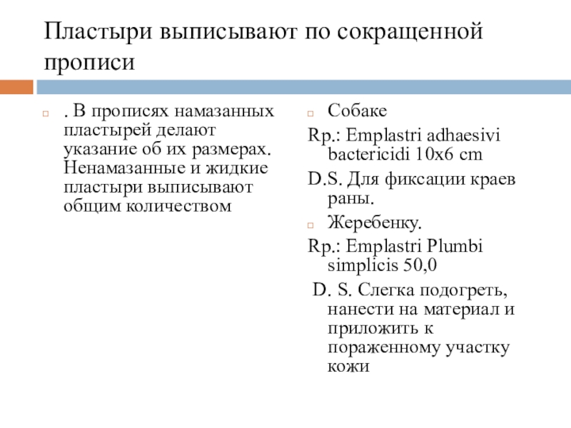 Слайд 43Пластыри выписывают по сокращенной прописи