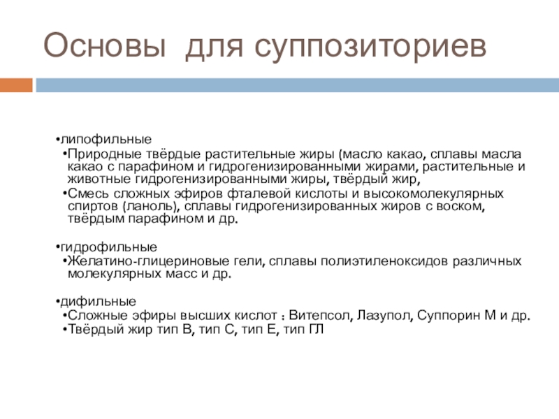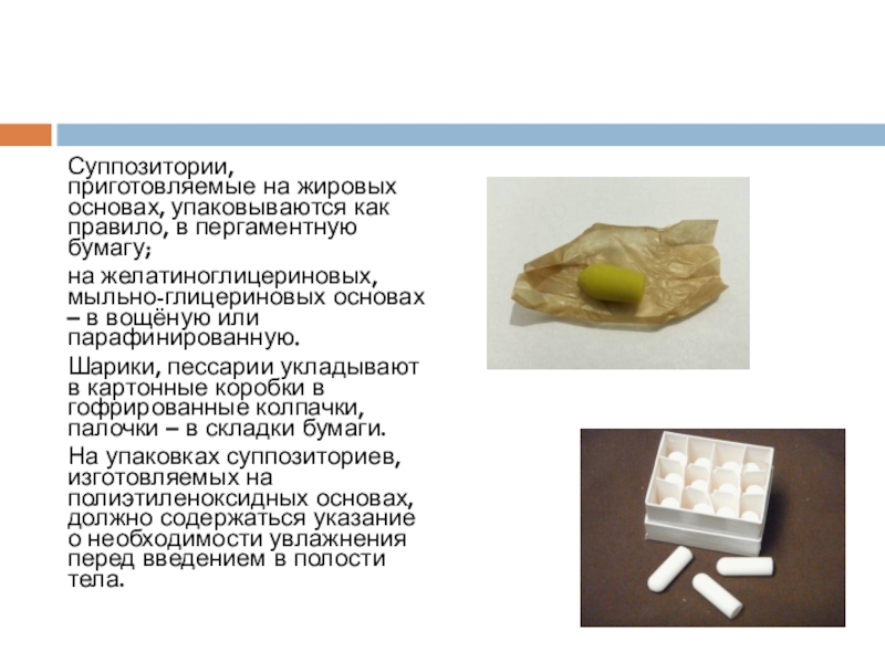 Слайд 36Суппозитории, приготовляемые на жировых основах, упаковываются как правило, в пергаментную