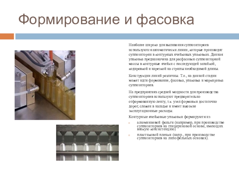 Наиболее широко для выливания суппозиториев используются автоматически линии,