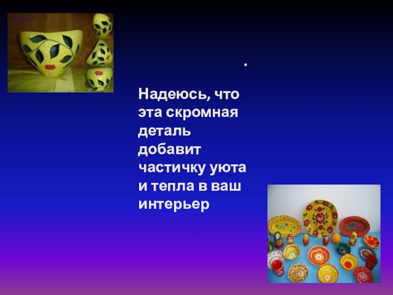 Слайд 99.Готовое папье-маше можно покрыть лаком, чтобы сделать рисунок глянцевым. К