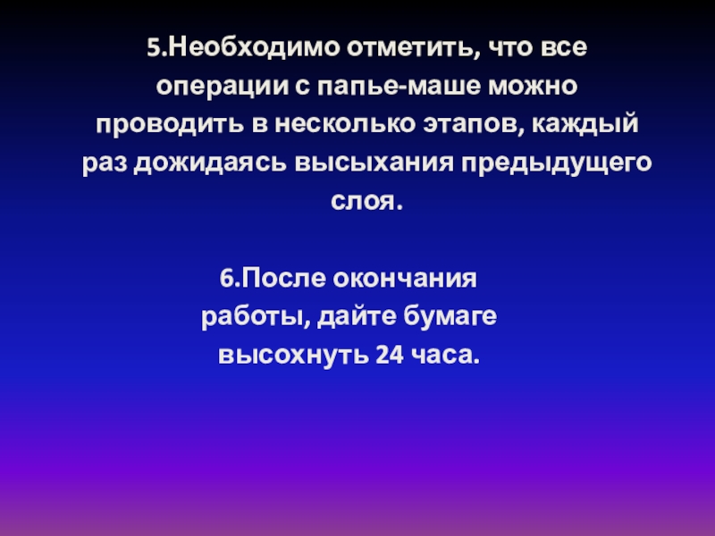 Слайд 65.Необходимо отметить, что все операции с папье-маше можно проводить в