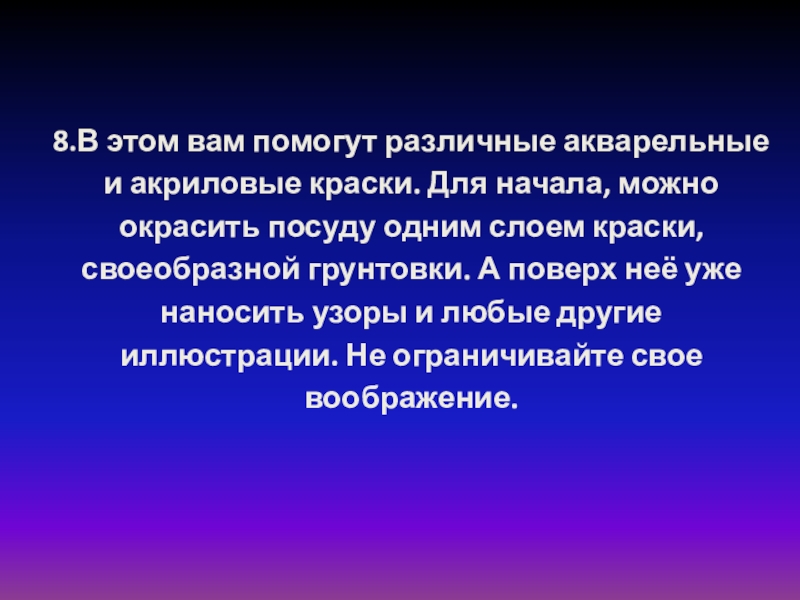 Слайд 88.В этом вам помогут различные акварельные и акриловые краски. Для