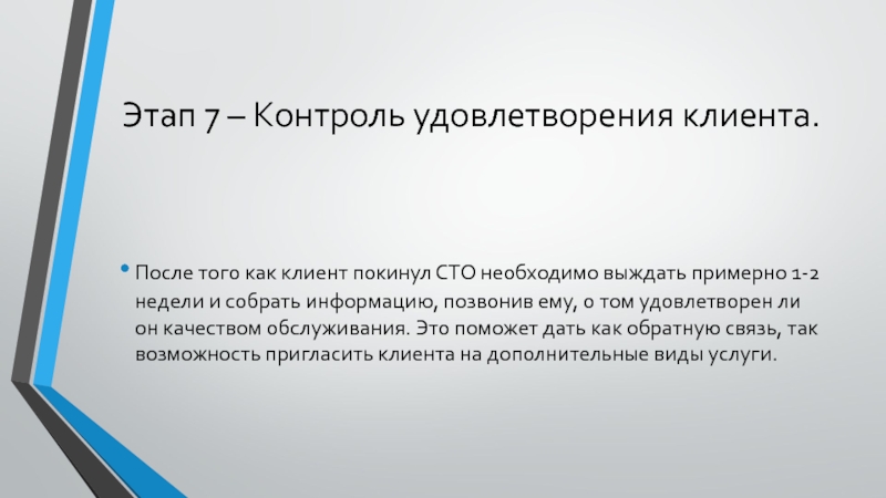 Слайд 9Этап 7 – Контроль удовлетворения клиента.
