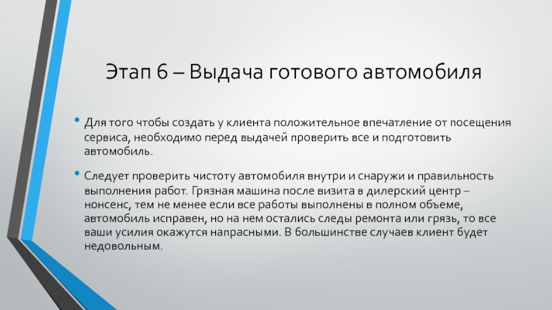 Слайд 8Этап 6 – Выдача готового автомобиля