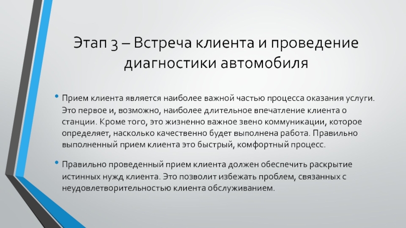 Слайд 6Этап 3 – Встреча клиента и проведение диагностики автомобиля