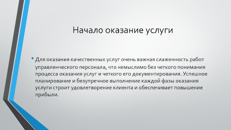 Слайд 2Начало оказание услуги