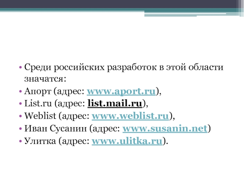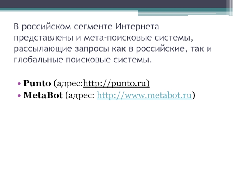 Слайд 23В российском сегменте Интернета представлены и мета-поисковые системы, рассылающие запросы