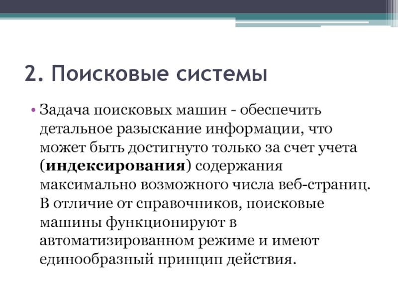 Задача поисковых машин - обеспечить детальное разыскание информации,
