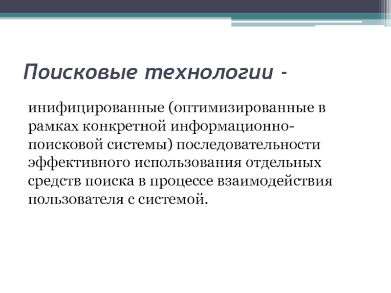 Слайд 10Средства поиска - взаимозависимый комплекс информационно-поисковых языков и языков определения/управления