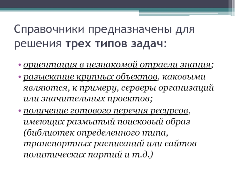 Слайд 16Справочники предназначены для решения трех типов задач: