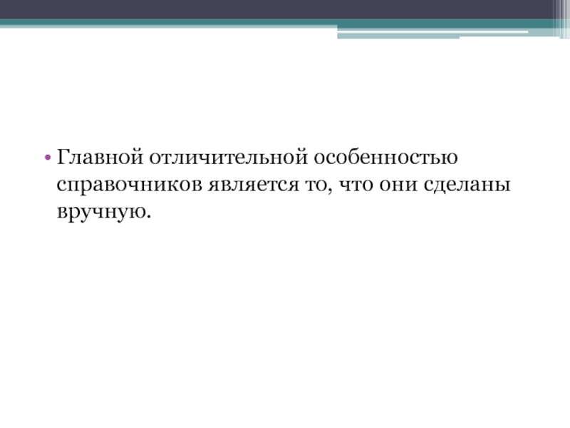Слайд 13Главной отличительной особенностью справочников является то, что они сделаны вручную.
