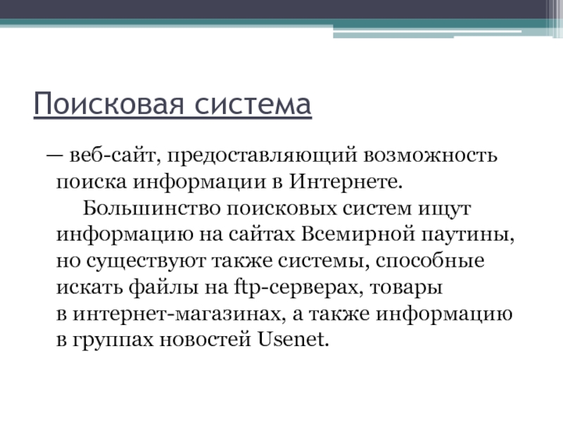 — веб-сайт, предоставляющий возможность поиска информации в Интернете.