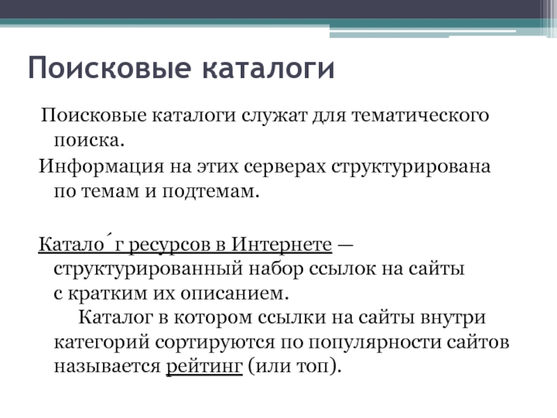 Слайд 8Тематические каталоги предусматривают обработку документов и отнесение их к одной