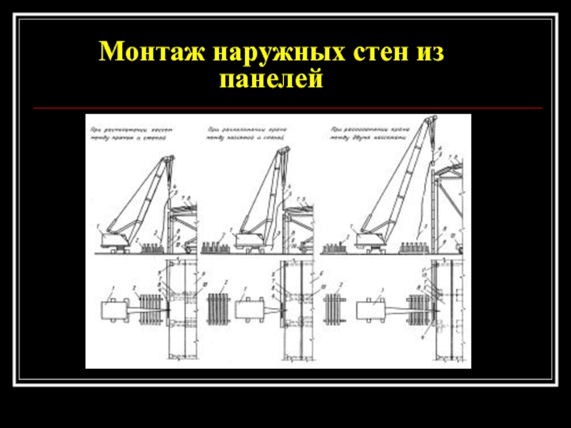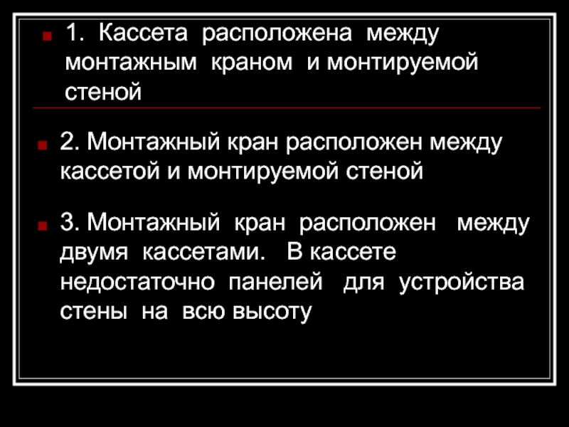 Слайд 801. Кассета расположена между монтажным краном и монтируемой стеной
