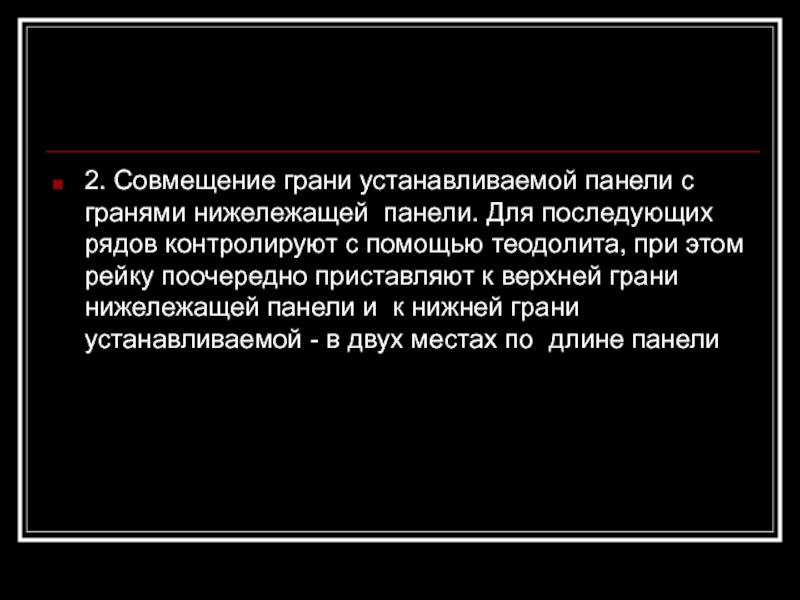 Слайд 822. Совмещение грани устанавливаемой панели с гранями нижележащей панели. Для