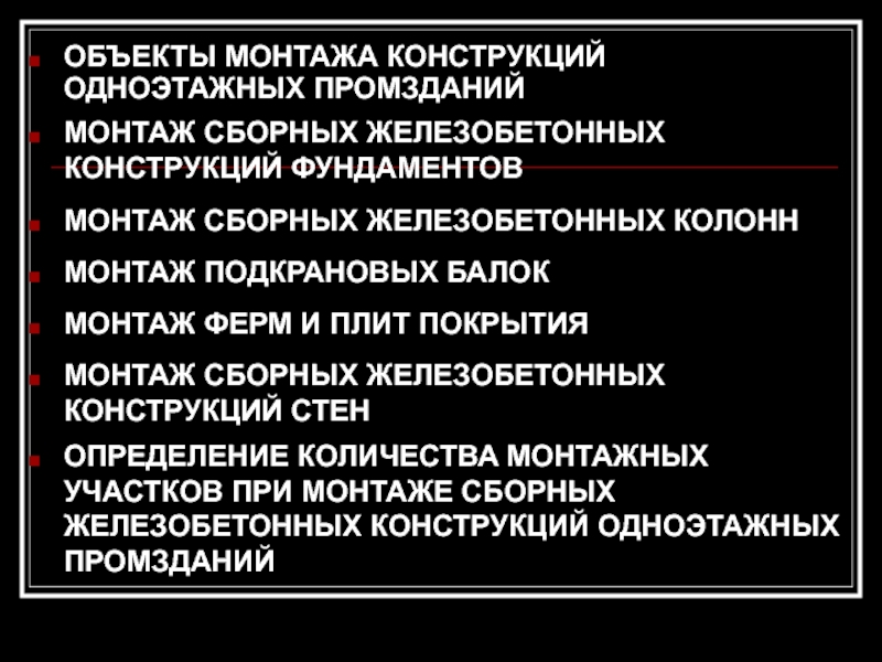 Слайд 2 МОНТАЖ ЖЕЛЕЗОБЕТОННЫХ КОНСТРУКЦИЙ ОДНОЭТАЖНЫХ ПРОМЗДАНИЙ