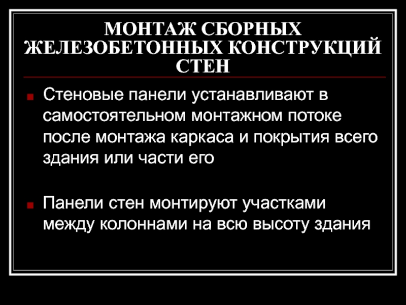 Слайд 77МОНТАЖ СБОРНЫХ ЖЕЛЕЗОБЕТОННЫХ КОНСТРУКЦИЙ СТЕН