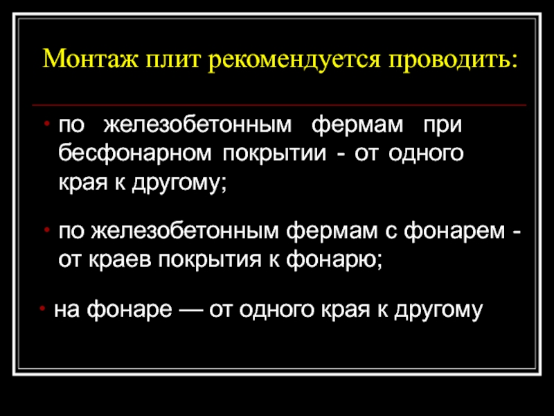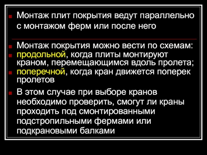 Слайд 66Монтаж плит покрытия ведут параллельно с монтажом ферм или после