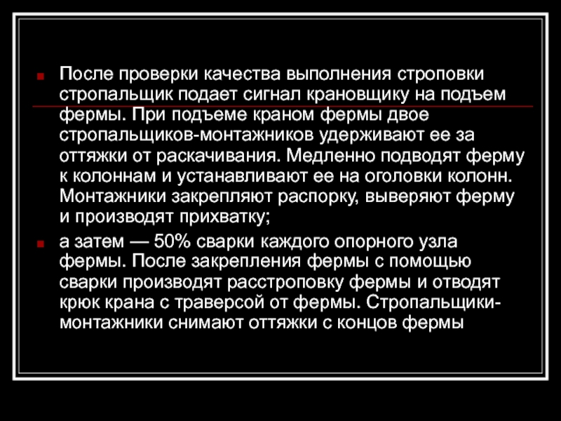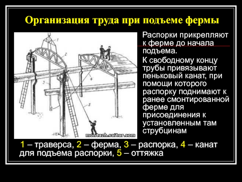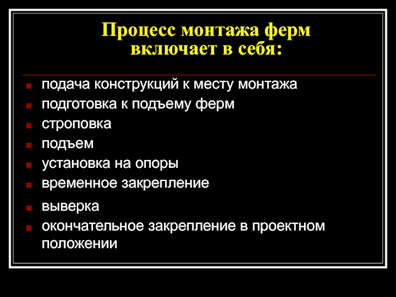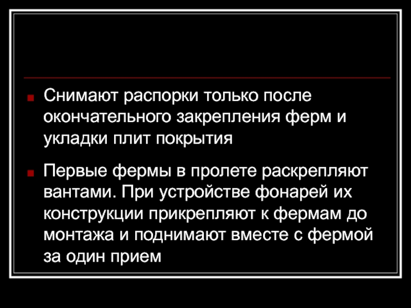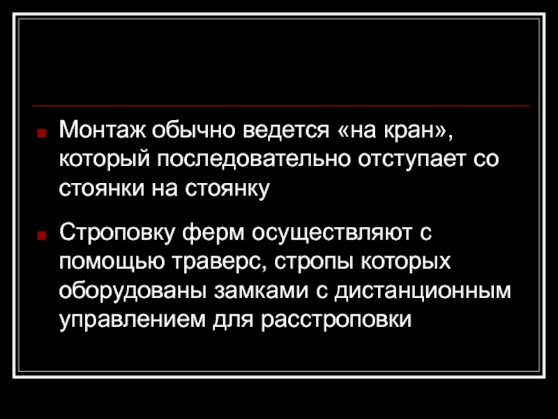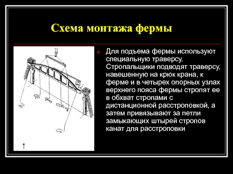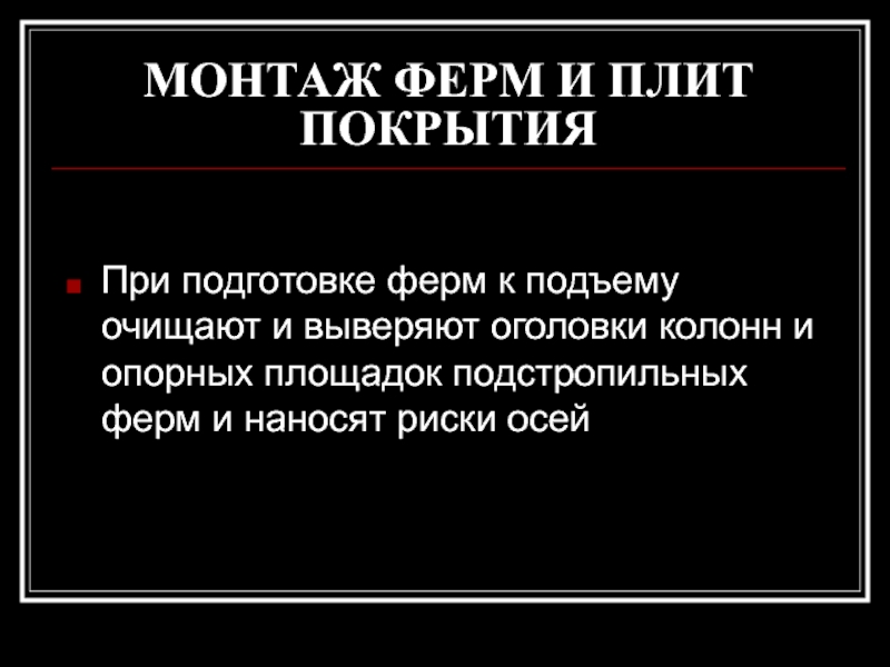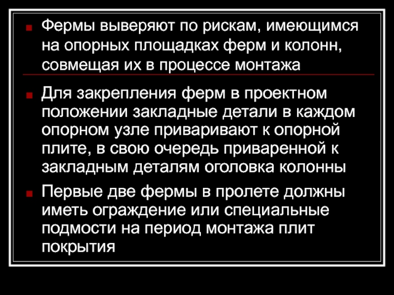 Слайд 64Фермы выверяют по рискам, имеющимся на опорных площадках ферм и