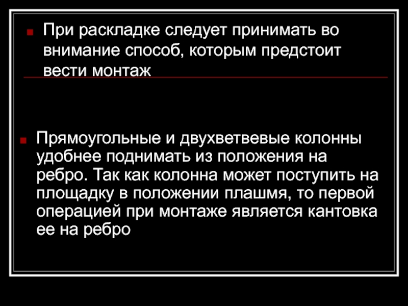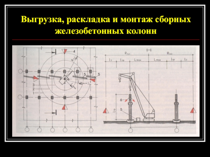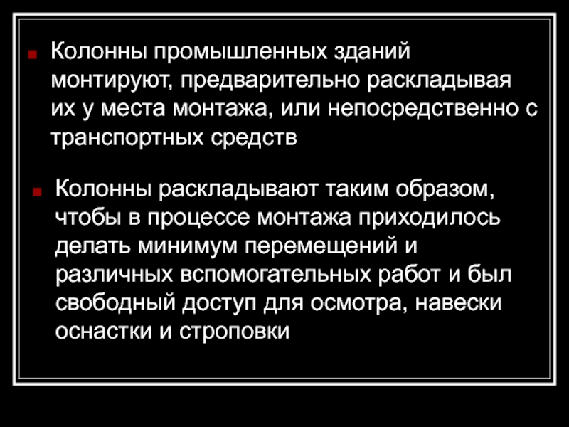Слайд 16Колонны промышленных зданий монтируют, предварительно раскладывая их у места монтажа,