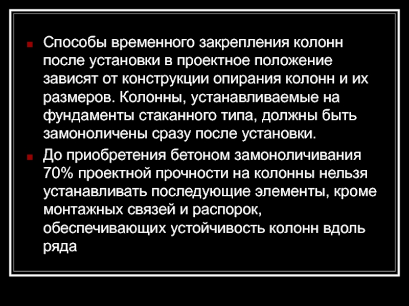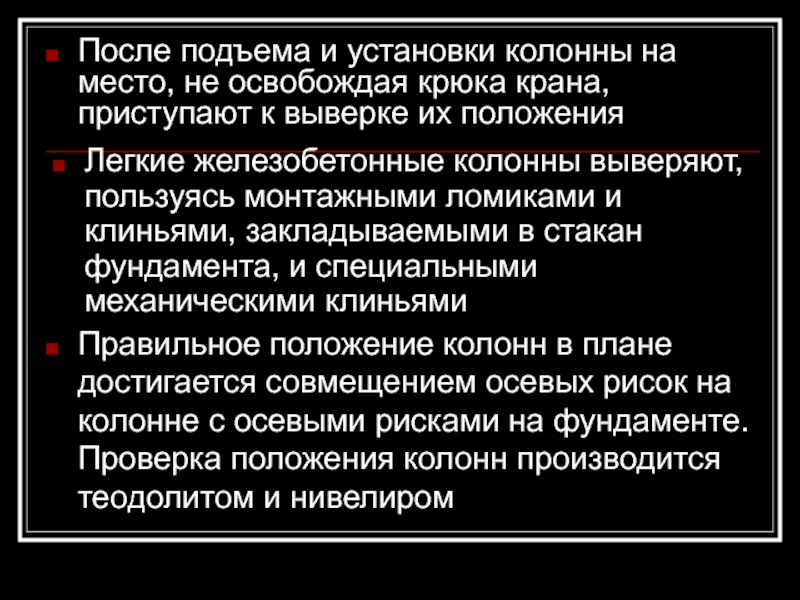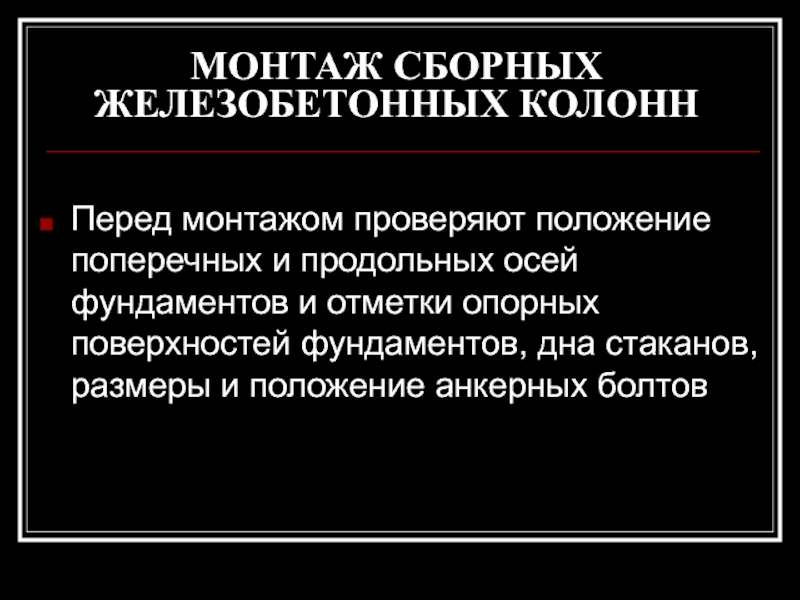 Слайд 13МОНТАЖ СБОРНЫХ ЖЕЛЕЗОБЕТОННЫХ КОЛОНН