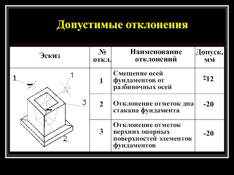Отклонение отметок верхних опорных поверхностей элементов фундаментов