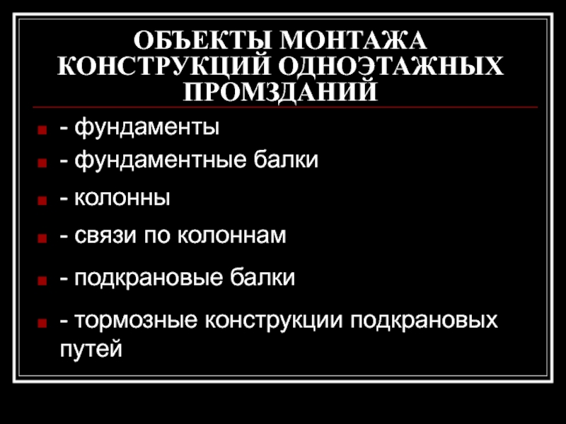 Слайд 6ОБЪЕКТЫ МОНТАЖА КОНСТРУКЦИЙ ОДНОЭТАЖНЫХ ПРОМЗДАНИЙ