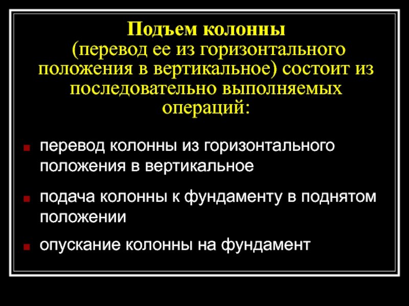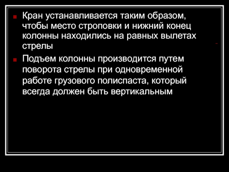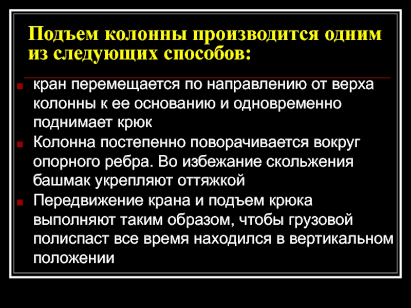 крана. Такая раскладка выполняется при условии, что длина колонны меньше