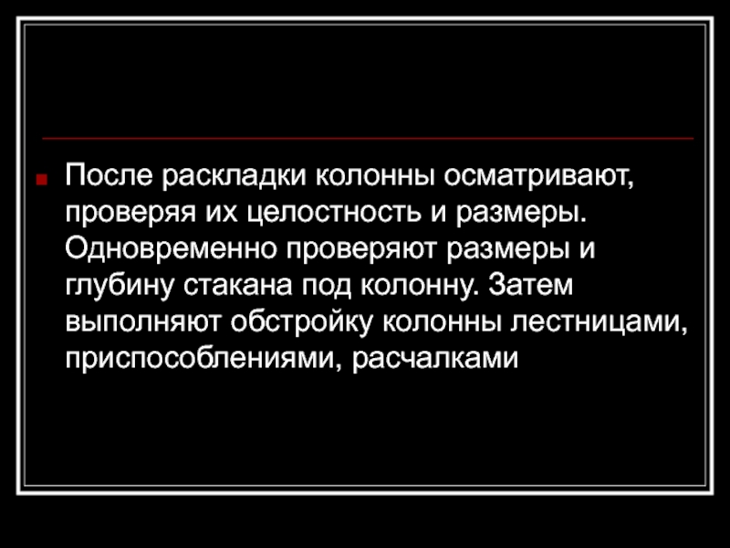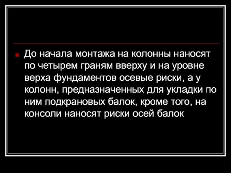 Слайд 14До начала монтажа на колонны наносят по четырем граням вверху