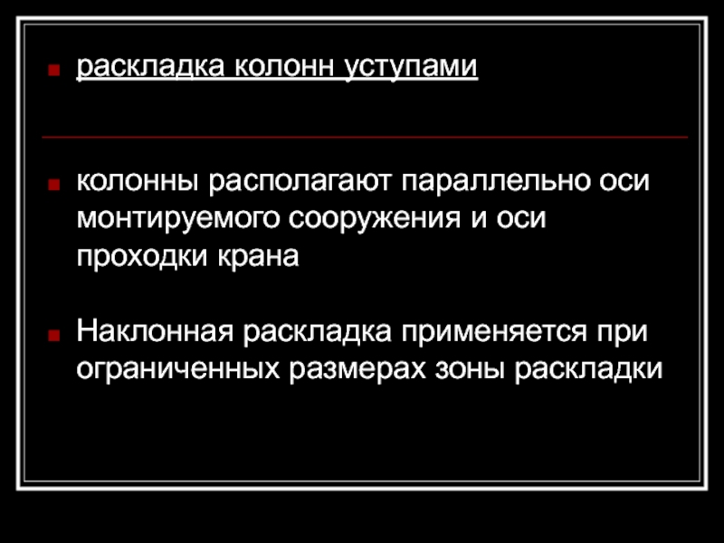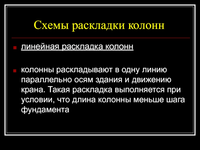 Слайд 17колонны раскладывают в одну линию параллельно осям здания и движению