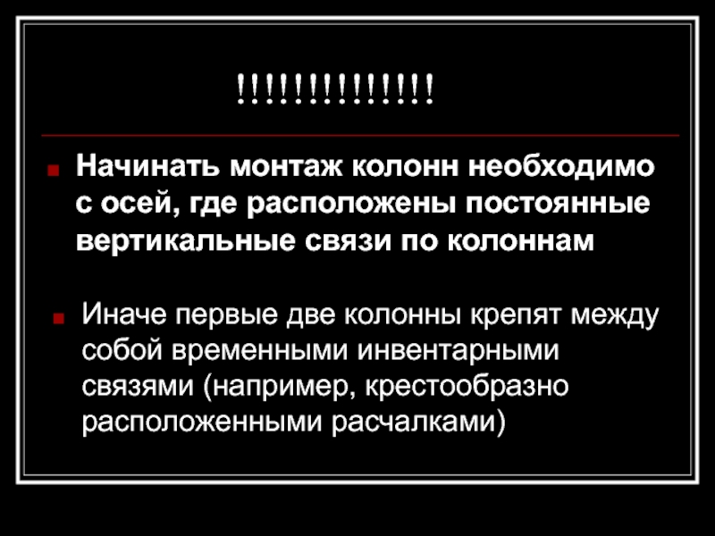 Начинать монтаж колонн необходимо с осей, где расположены постоянные вертикальные