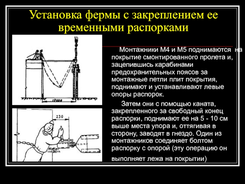 Первые две фермы в пролете должны иметь ограждение или специальные подмости на период монтажа плит покрытия
