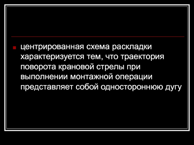 Слайд 19центрированная схема раскладки характеризуется тем, что траектория поворота крановой стрелы