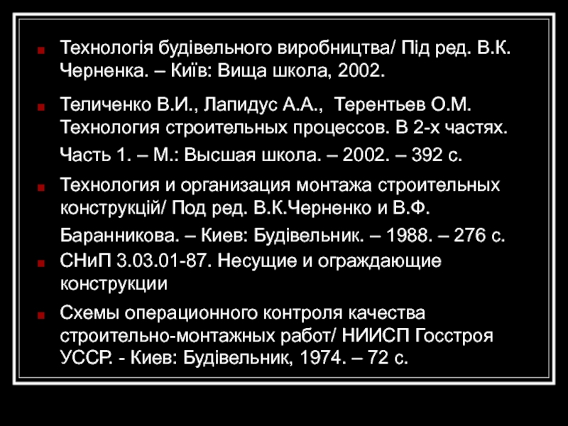 Слайд 5Технологія будівельного виробництва/ Під ред. В.К. Черненка. – Київ: Вища