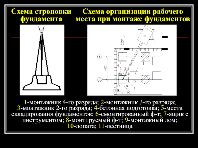 складирования фундаментов; 6-смонтированный ф-т; 7-ящик с инструментом; 8-монтируемый ф-т; 9-монтажный лом;